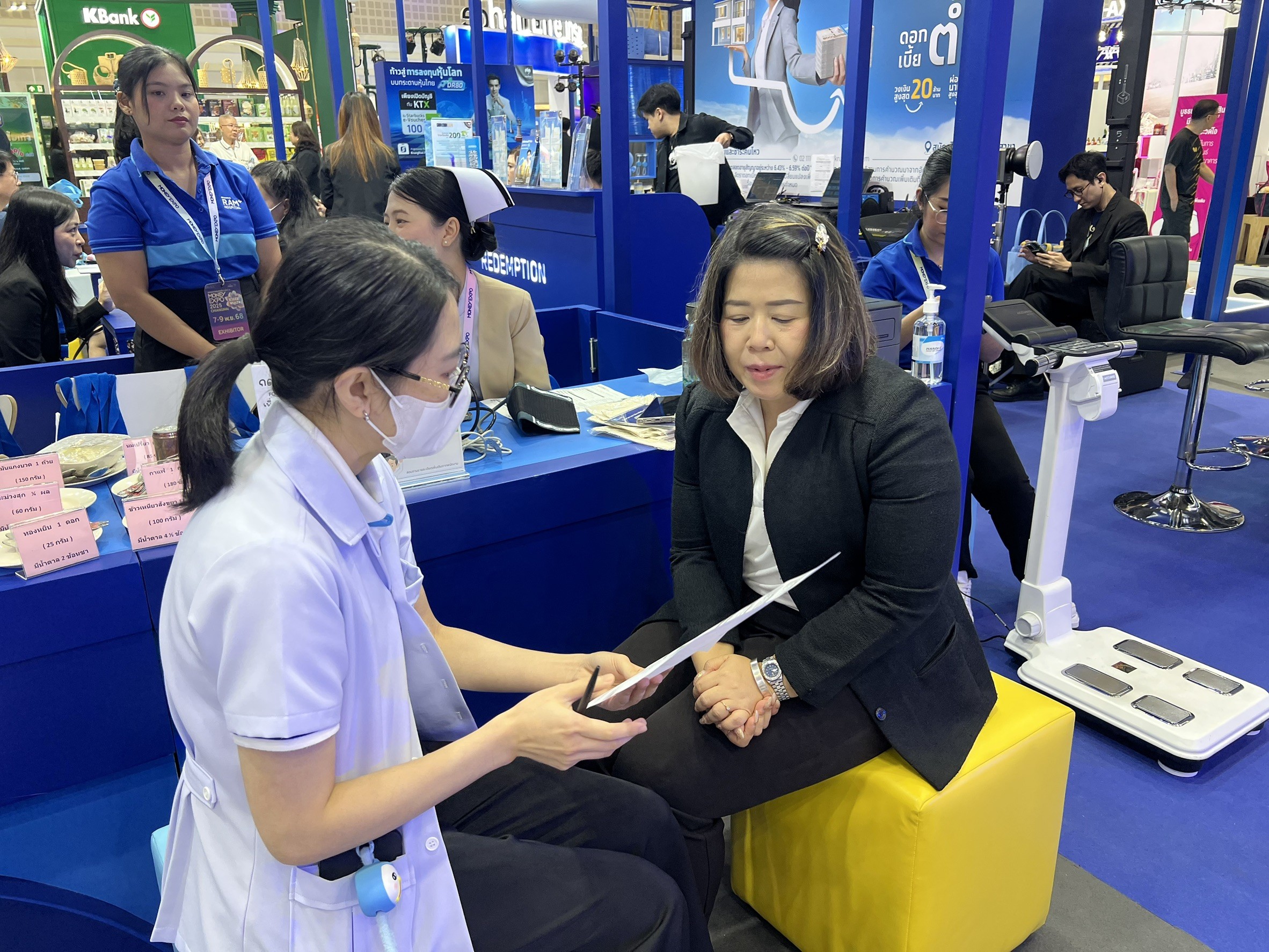 ภายในบูธโรงพยาบาลมีกิจกรรมตรวจสุขภาพเบื้องต้น อาทิ การตรวจวัดความดันโลหิต การประเมินปริมาณไขมันส่วนเกินในร่างกาย พร้อมให้คำปรึกษาด้านสุขภาพโดยพยาบาลวิชาชีพ และให้คำแนะนำด้านโภชนาการโดยนักกำหนดอาหาร นอกจากนี้ ยังมีของที่ระลึกมอบให้แก่ผู้ร่วมงานตลอดกิจกรรม