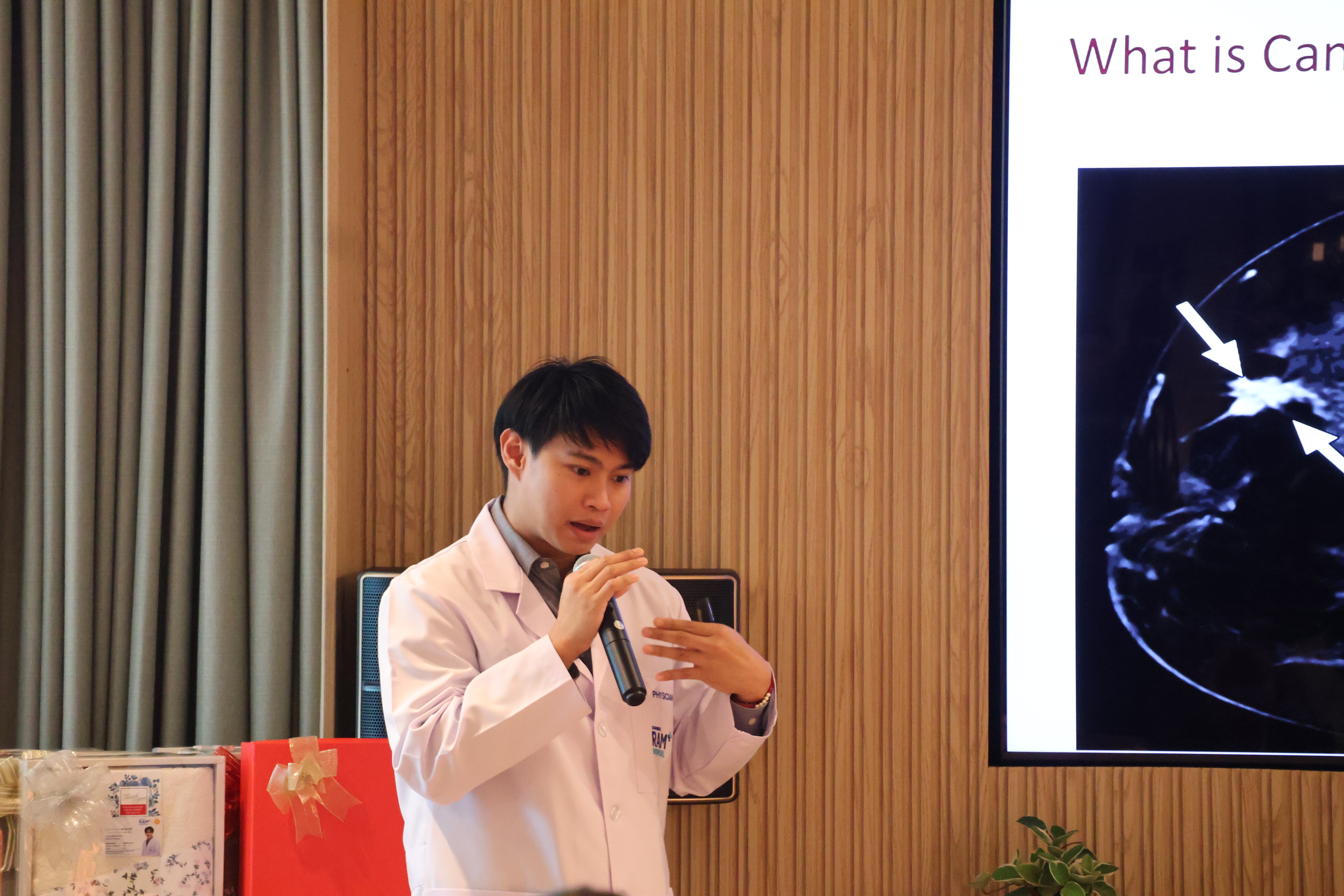 การบรรยายครั้งนี้มุ่งเน้นให้ความรู้เกี่ยวกับความเสี่ยงของโรคมะเร็งชนิดต่าง ๆ โดยเฉพาะ 5 มะเร็งที่พบมาก ได้แก่ มะเร็งปอด มะเร็งตับ มะเร็งเต้านม มะเร็งลำไส้ และมะเร็งปากมดลูก พร้อมให้ข้อมูลด้านการตรวจคัดกรองและระยะของโรคมะเร็ง เพื่อส่งเสริมให้ผู้เข้าร่วมตระหนักถึงความสำคัญของการตรวจหามะเร็งตั้งแต่ระยะเริ่มต้น