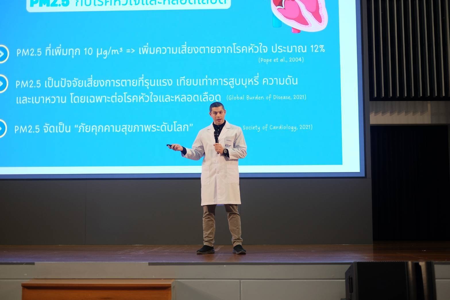 ภายในงานได้รับเกียรติจาก นพ.ปวิน บัดติยา อายุรแพทย์โรคระบบทางเดินหายใจและผู้ป่วยวิกฤต เป็นวิทยากรบรรยายให้ความรู้เกี่ยวกับผลกระทบของฝุ่น PM 2.5 ต่อสุขภาพ แนวทางการป้องกัน และการดูแลตนเองอย่างถูกต้อง พร้อมด้วยทีมพยาบาลและเจ้าหน้าที่ร่วมให้บริการตรวจสุขภาพเบื้องต้น ให้คำปรึกษา และแนะนำแพ็กเกจสุขภาพ เพื่อส่งเสริมการดูแลสุขภาพเชิงป้องกันและสร้างความตระหนักรู้ในการรับมือกับวิกฤตฝุ่นละอองขนาดเล็กอย่างเหมาะสม