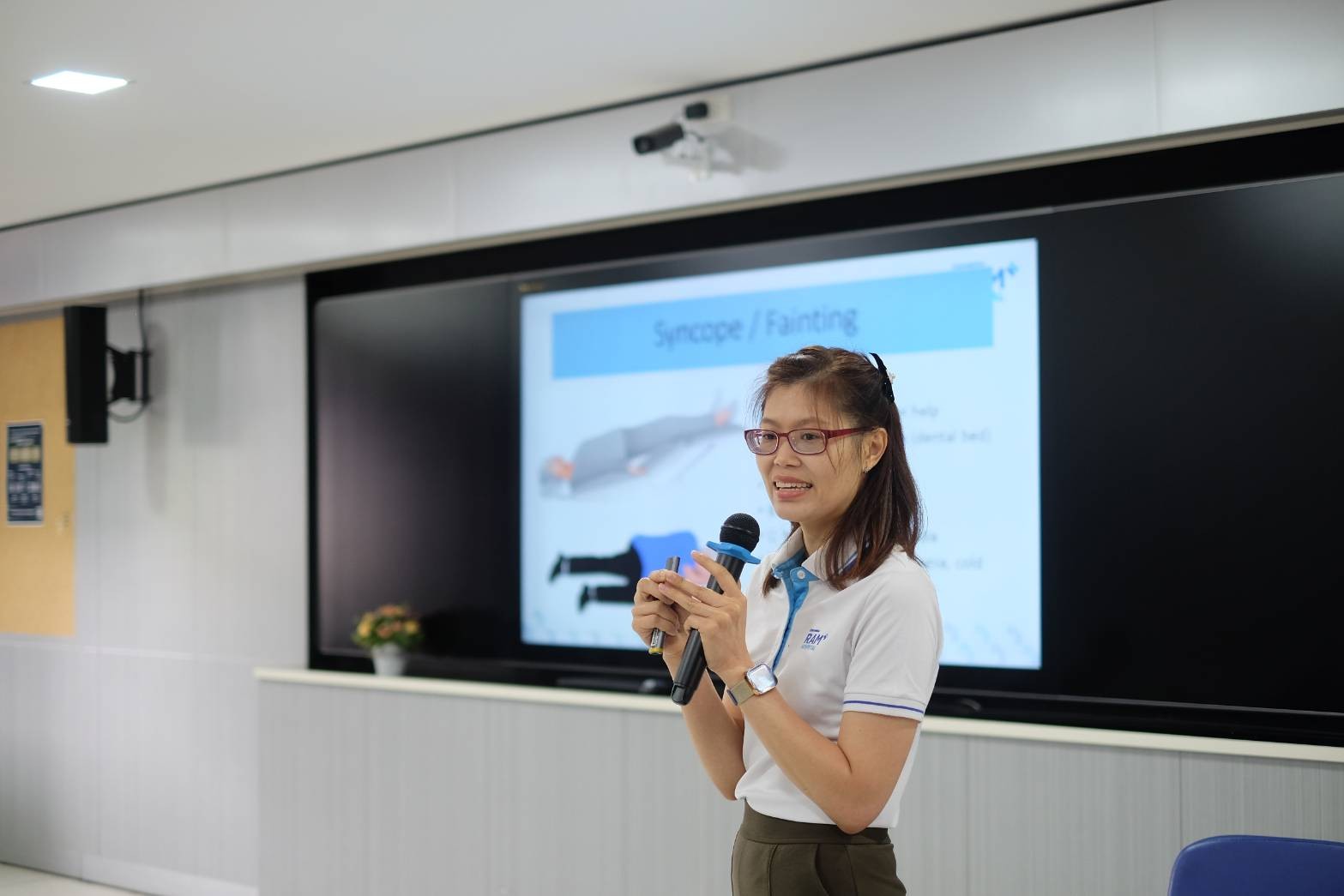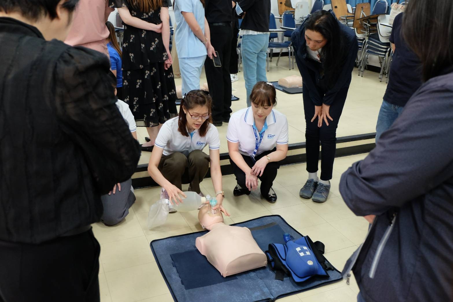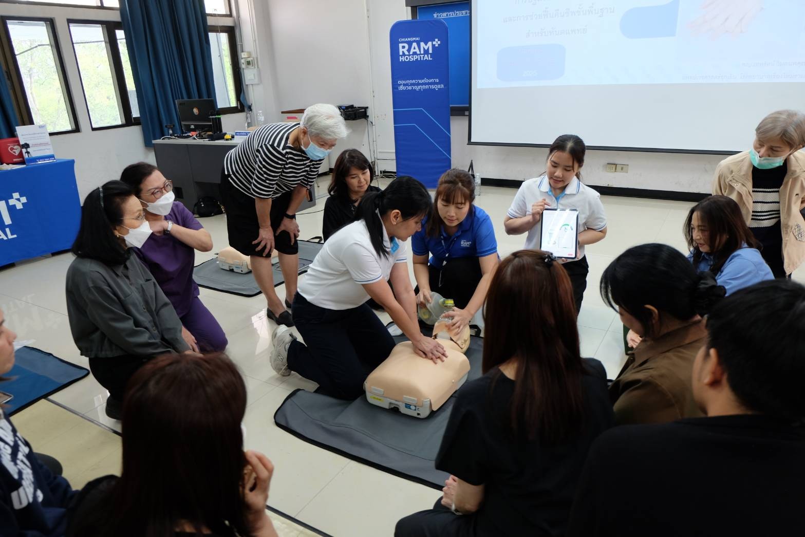 โดยการบรรยายในหัวข้อ การปฐมพยาบาลเบื้องต้น การช่วยฟื้นคืนชีพขั้นพื้นฐาน (BLS) และการใช้เครื่องกระตุกหัวใจไฟฟ้าอัตโนมัติ (AED) ได้รับเกียรติจาก พญ.เทพรัตน์ วิมลนพคุณ แพทย์เวชศาสตร์ฉุกเฉิน พร้อมด้วยทีมพยาบาลวิชาชีพจากโรงพยาบาลเชียงใหม่ ราม ที่ผ่านการอบรมหลักสูตร การช่วยฟื้นคืนชีพขั้นสูง (ACLS) ร่วมบรรยาย สาธิต และฝึกปฏิบัติจริงกับหุ่นจำลองและอุปกรณ์เสมือนอย่างใกล้ชิด เพื่อเสริมสร้างทักษะและความมั่นใจในการรับมือเหตุฉุกเฉินได้อย่างถูกต้องและทันท่วงที