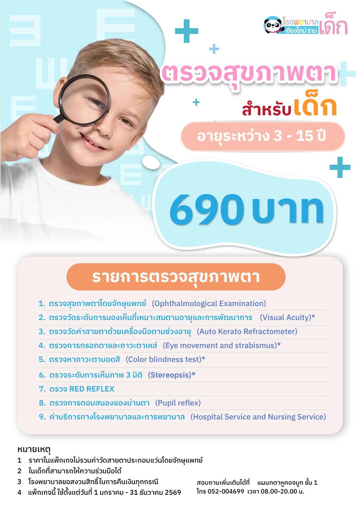 โรงพยาบาลเชียงใหม่ ราม ได้จัดทำแพ็คเกจตรวจสุขภาพสายตาเด็ก เพื่อรับการตรวจหาสาเหตุ วางแผนการรักษา รวมทั้งปรับพฤติกรรมเด็กร่วมกับจักษุแพทย์ให้สายตาเด็กกลับมาเป็นปกติได้