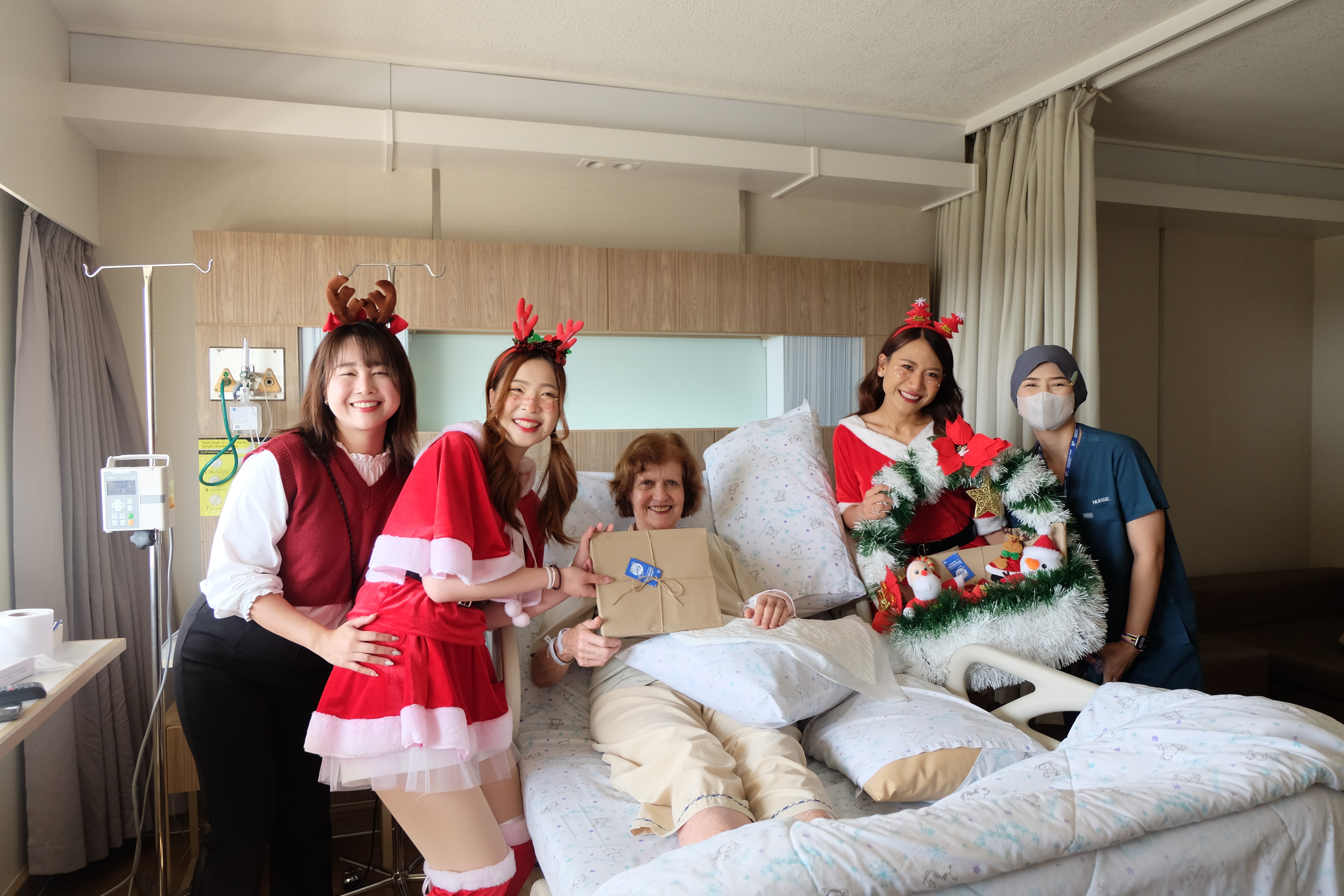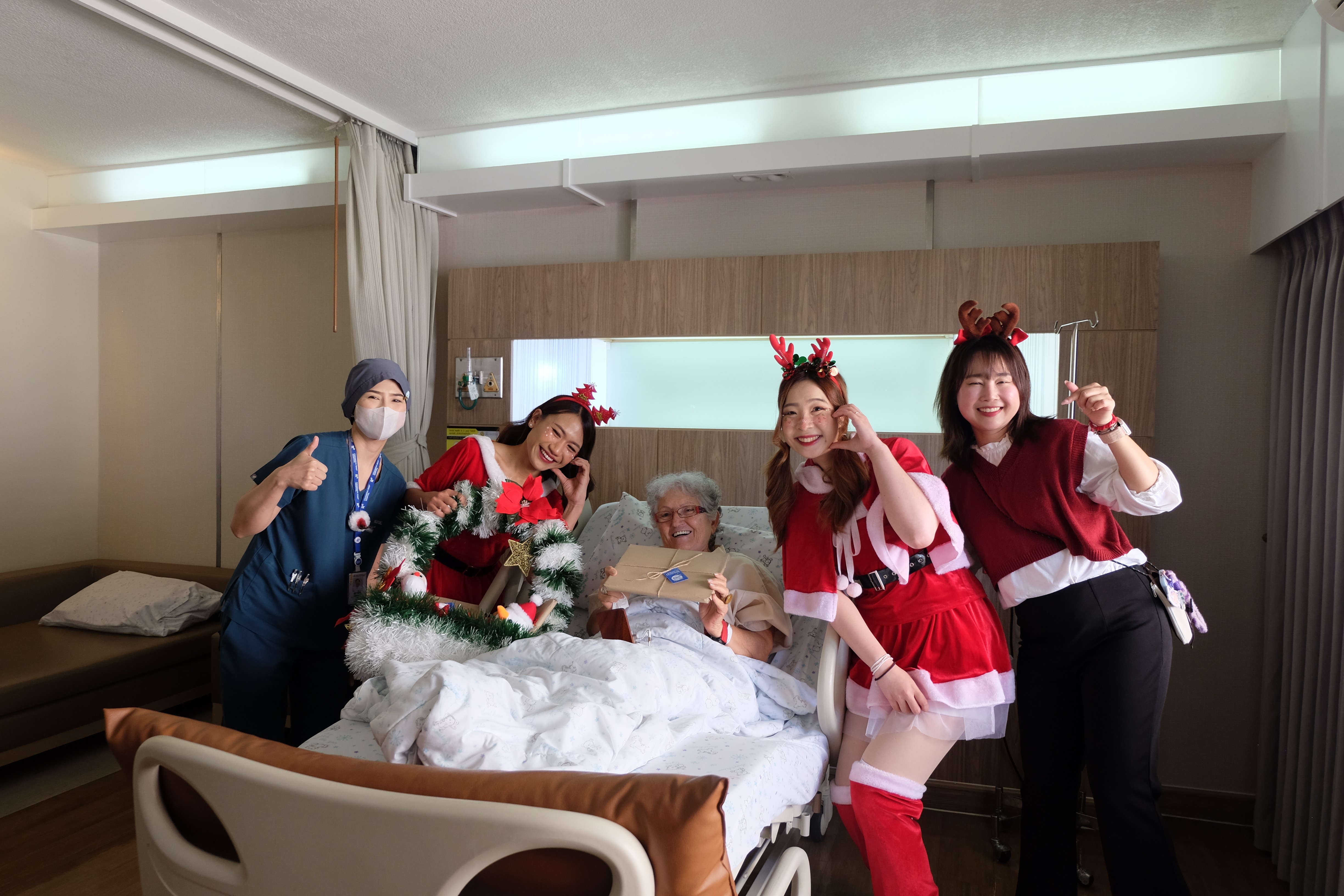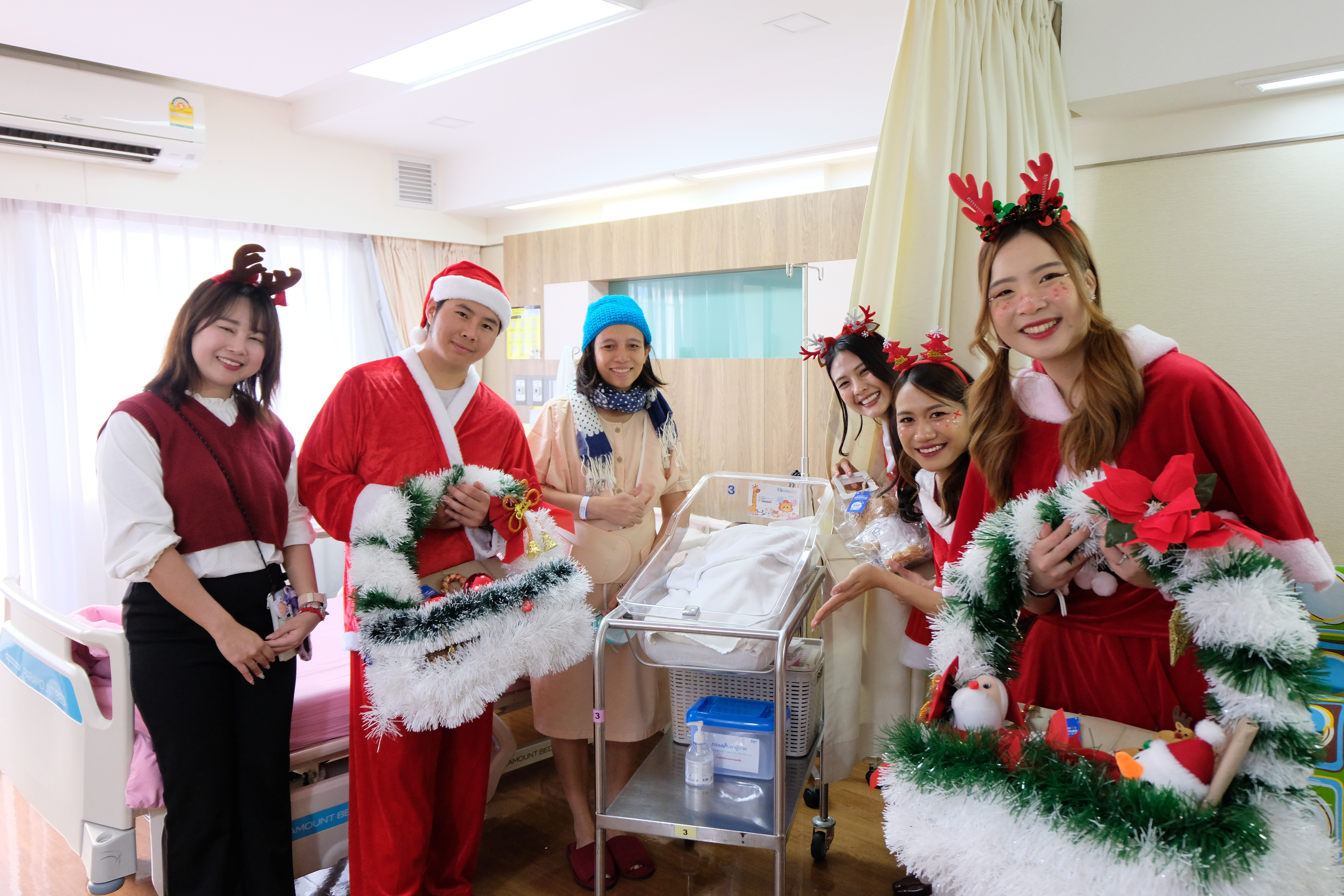 โดยมีซานต้าและแซนตี้เข้าเยี่ยมผู้ป่วยถึงห้องพัก พร้อมมอบของขวัญแทนความห่วงใย ทั้งปฏิทินประจำปี 2569 เพื่อร่วมส่งต่อความสุขและความอบอุ่นใจในเทศกาลพิเศษนี้