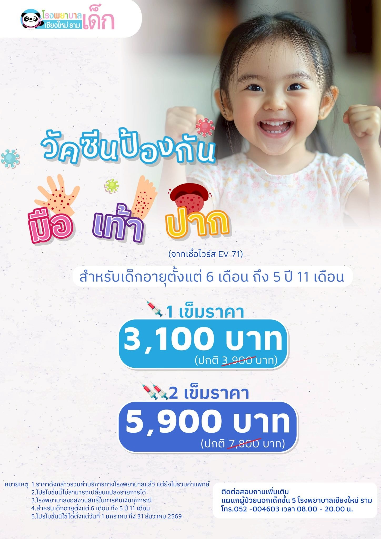 - ราคานี้รวมค่าวัคซีน เวชภัณฑ์อุปกรณ์ ค่าบริการโรงพยาบาล แต่ไม่รวมค่าแพทย์