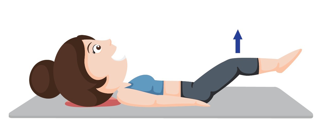 วิธีทำแบบที่ 1. นอนหงาย ยกขาขึ้นทั้งสองข้างประมาณ 15-20 องศา