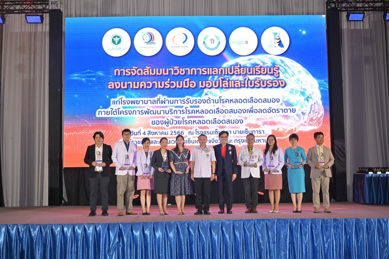 วันที่ 4 สิงหาคม พ.ศ.2566 นายแพทย์ ประชา กัญญาประสิทธิ์ แพทย์ผู้เชี่ยวชาญเฉพาะทางศัลยกรรมระบบประสาทและหลอดเลือดสมอง พร้อมด้วย คุณศุภลักษณ์ วีรเดชะ หัวหน้าแผนกฉุกเฉิน เป็นตัวแทนโรงพยาบาลเชียงใหม่ ราม เข้ารับโล่ประกาศเกียรติคุณรางวัล โรงพยาบาลที่ผ่านการประเมินเพื่อขอต่ออายุการรับรองคุณภาพ ระบบบริการโรคหลอดเลือดสมองมาตรฐาน (Re – accreditation) ครั้งที่ 1 ในงานสัมมนาวิชาการแลกเปลี่ยนเรียนรู้ ลงนามความร่วมมือ มอบโล่และใบรับรอง แก่โรงพยาบาลที่ผ่านการรับรองด้านโรคหลอดเลือดสมอง ภายใต้โครงการพัฒนาบริการโรคหลอดเลือดสมองเพื่อลดอัตราการตายของผู้ป่วยโรคหลอดเลือดสมอง ณ ห้องประชุมวายุภักษ์ 3 – 4 ชั้น 4 โรงแรมเซ็นทรา บายเซ็นทารา ศูนย์ราชการและคอนเวนชันเซ็นเตอร์ แจ้งวัฒนะ กรุงเทพมหานคร
