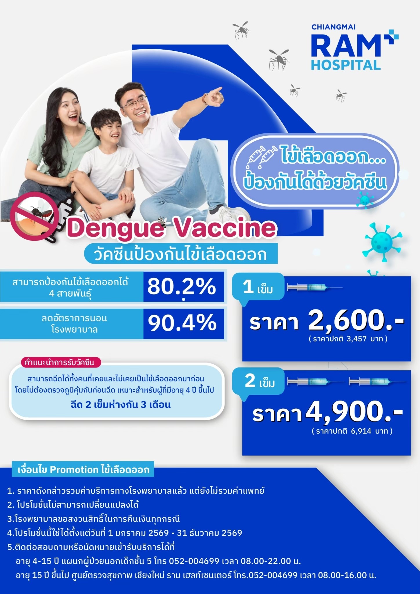 2. ราคาโปรโมชั่นนี้รวมค่าวัคซีน ค่าอุปกรณ์ ค่าบริการทางโรงพยาบาล แต่ไม่รวมค่าแพทย์